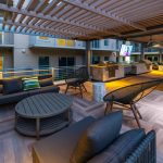 Concierge Services – Electric Car Charging Stations – Outdoor amenity deck with grill stations overlooking Downtown – Pool deck with sun shelf lounging, cabanas, kitchen with grills, and bistro seating – Fitness center with cardio and strength training overlooking pool deck – Sports lounge with TV’s, pool table, and shuffleboard – Conference room – Personal workstations – Sky Lounge with catering kitchen, outdoor entertainment deck, and downtown views – Yoga lawn – Bark Park with pet water fountain and agility equipment – Pet spa – Bike storage room with bike fix station – Car service waiting lounge – Furnished guest suite – Kayak and canoe storage available – Smoke-free community